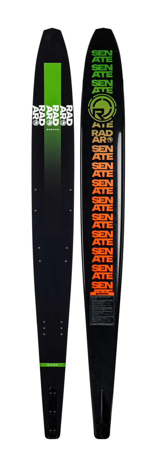 Our best-selling ski for a reason. We pair a polyurethane core with Paulownia wood stringers, wrap it carbon and push play. The result is incredible speed to the wakes, but with a softer more predictable ride through the turn. From the back waters to the buoys, glassy mornings to afternoon chop, the Senate Alloy is the perfect choice for any skier in the boat.