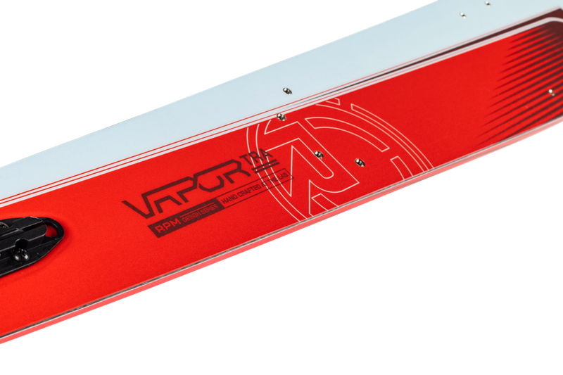 Goal one for the redesigned Vapor series was capitalizing on waterflow efficiency throughout the entire length of the ski. With particular emphasis on the waterflow entry point, Matt Rini started at the very tip of the ski and worked his way back. Finding the perfect marriage between top rocker (the bend of the ski you see on the top surface) and the tunnel rocker (the path the tunnel of the ski takes as it arcs up toward the tip) is critical in creating a predictable, balanced platform to stand on as the tip dives into the turn. Stability is king when you need to rip a turn, and the new Vapor delivers.