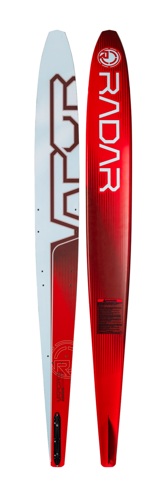 Speed, balance and space; the three hallmarks of the Vapor lineage are what have made it the most popular ski on the market, season after season, design after design. While keeping the increased profile radius and sharper bevels of its predecessor, for the New 2026 Vapor line we focused our attention on smoothing out the marriage between tunnel rocker, bevel rocker, and ultimate tip height. We have created our smoothest, most balanced tunnel entry yet, allowing you to utilize as much of the tip of the ski as you like while you move into the turn. This gives the skier boundless confidence to stand wherever they like and still drive into the turn as aggressively as they dare. More controlled water flow from the tip through the forebody allows the ski to pull through the turn at a more even rate, from apex to edge change. A balanced tip of the ski equals a sturdy and reliable tail of the ski, allowing you to move at will, with confidence that the entire ski is going to support your move-ments, and the fin is going to hold. Forging a new design era at Radar Skis, we took the details from our past and melded them with the new direction of our future. Enjoy!