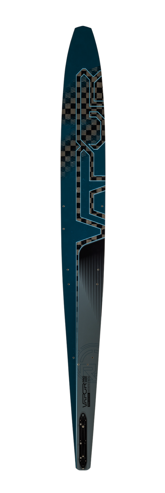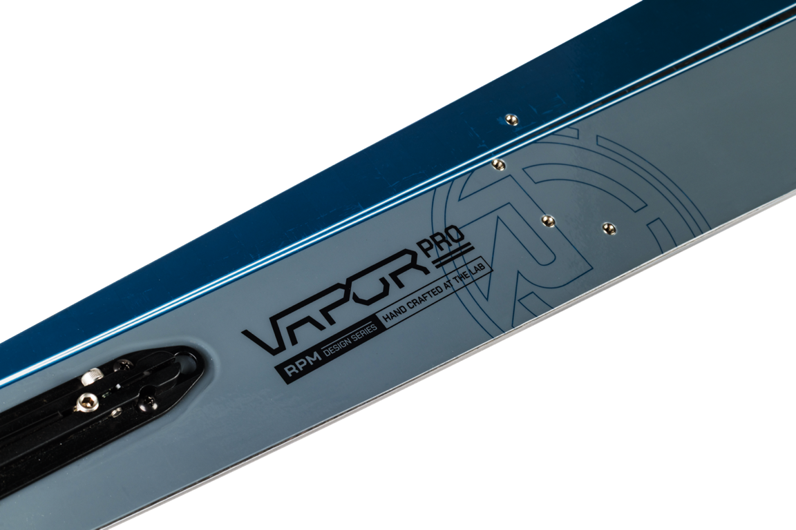Our latest Vapor is the culmination of all the skis we’ve created to date. Every time we build a new ski, we learn something; defining what bevel shape is best and which rocker line is most balanced is now rooted in our DNA. As we approached this ski we reflected upon things in our past and learned from what we’ve tried before. The result is a ski that finishes the turn with more angle and speed than its predecessor and sweeps away from the wake with ease. By sharpening the bevel in the front half of the ski we created a ski that’s more intuitive as it enters the turn; this combined with narrowing the tail of the ski creates sustainable angle that can be carried from the finish of the turn through centerline. The balance you feel over your feet is a direct result of the rocker built into the shape of the ski. Our rocker line flattens fore and aft of the wide spot providing a larger platform. This places you over the front foot with ease, making tighter, more consistent turns. Fundamentally, the lower rocker line dramatically improves feedback from the ski and leads to a more natural and intuitive feeling ride. The way this ski flows from turn to turn with the speed only a Vapor is known for will have you running more buoys than ever before. Ski it for yourself.