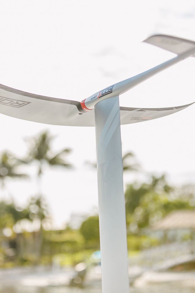 Rhythmic flow of a sequence of movements, a common theme in analyzing foils is getting great drive and lift but having a hard time controlling it. The board will skyrocket to the top, plunge to the bottom, or somewhere in between. This series of wings will ask you what floor on the elevator do you want to reach – and most importantly – keep you there. A nimble turn that will easily roll over to edge with its elliptical outline and additional width. It will quickly set you in the sweet spot, keep you on your specified flight pattern and do it with a quicker reacting edge hold. Offering a built in depth gauge - a white paint over the carbon fiber makes it easier to see how deep your foil set up is under the water.
