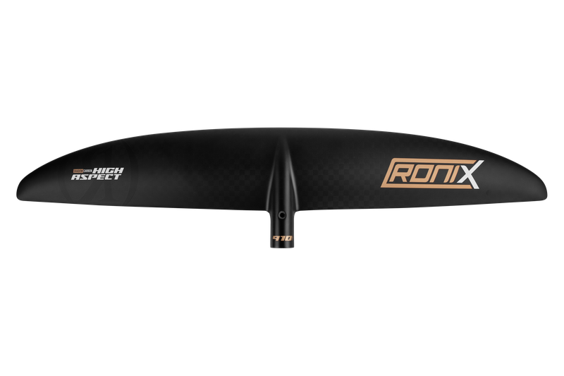 Finally, a High Aspect wing with unparalleled drive designed for the very distinct needs of riding behind a boat. There are a lot of fast wings out there - but In wakefoiling we prioritize stall speed and tight arcing turns as much as more as we do glide speed. Most high aspect wings are used in conditions where there is an endless supply of power coming from a 5 foot wave in prone foiling or a 20+ mph wind in wing foiling. Our challenge was to embrace a high aspect style of front wing shape that features a superior reduction in drag for an acceleration that holds more energy maximizing pump and glide. But what's really unique is this front wing gives a rider the ability to effectively execute tricks and wave transitions with a consistent and precise feeling. Made with an unmatched spread tow carbon autoclave construction and some design theories that have never been used in foiling. Enjoy the sensation of increased energy and hydrodynamic proficiency with this new High Aspect Series. The most efficient wing in the Ronix line, the new High Aspect front wing was designed for the experienced foiler who appreciates the performance benefits of high-speed riding and increased attack angle, without sacrificing stall speed and tight banked turns.