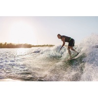 A fast, responsive style of board where the rider’s position is centered with a more balanced body. These sharp rail, thin profiled boards react quicker for people that don’t have a lot of time to waste. Preferred by surfers that like to have more feel with their board itself – and not just on fins. They can break free easier for 360’s on the water or shuvits off it. A more forgiving style of board when riding behind a steep wake because you typically ride this style of board at a shorter length (making it less likely to dunk the nose). Because of how speedy these models are – you can get away with a shorter, lightweight length.