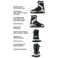 Starting with the industry first BOA® flap configuration, we’ve made it easier than ever to dial in the lower enclosure. This design was built from the ground up with two main objectives - 1. Unmatched board feel, 2. Eliminate lace friction so they are easy to slip in and out of. The double-lasting design comprised of our proprietary Intuition+ heat moldable liner and Mainframe 2.0 High Cut skeleton gives the rider support where it is needed most. By using our popular Cordura Ballistic Twill Nylon fabric, sleek off-white materials, and blue suede textured accents, this boot is sure to turn some heads and withstand any environment.